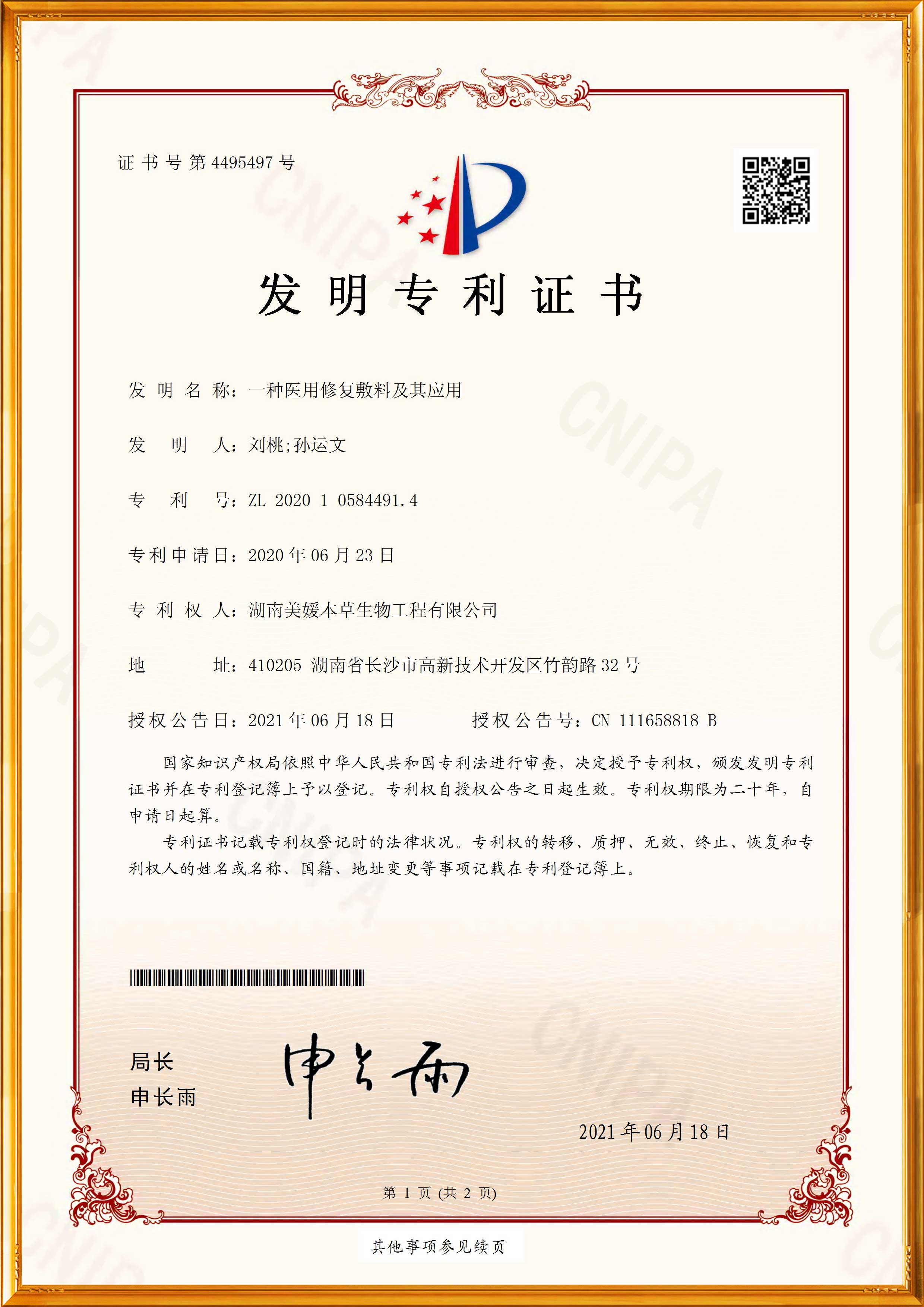 Patent certificate